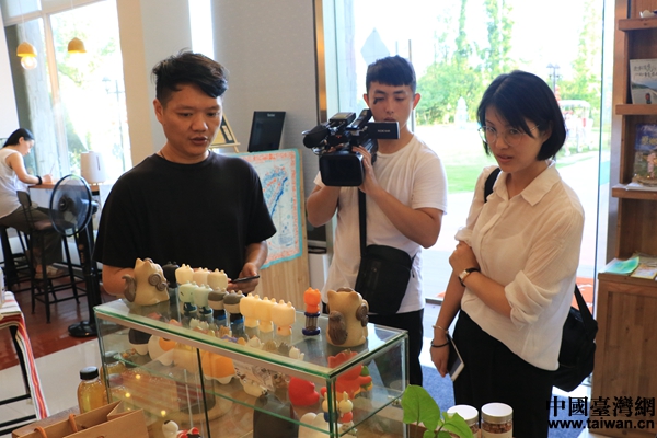 據介紹,很多臺灣青年在鄞州區創業園內有自己的創業項目。在創業園O2O線下體驗館不大的一個屋子里擺放著“番薯院子”、“海峽兩岸青年文創產品集市”等眾多臺灣創業者的文創產品,相關的負責人向記者介紹了他們的產品與理念。