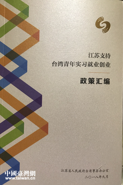 《江蘇支持臺灣青年實習就業創業政策匯編》。(中國臺灣網 陳文韜 攝)