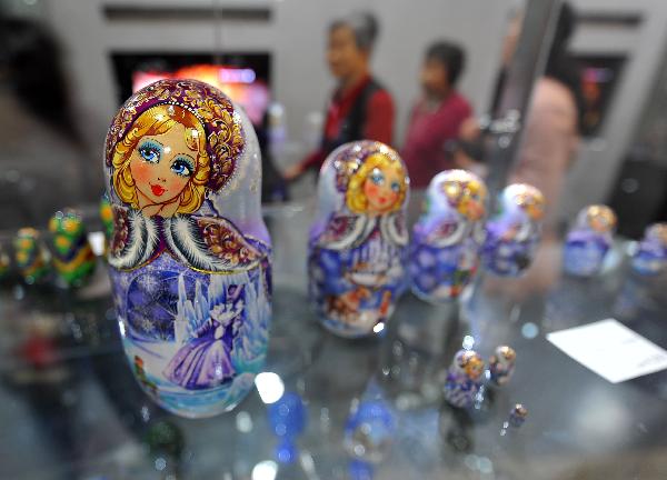Traditional matryoshka dolls are on display at the Russia Pavilion in the World Expo park in Shanghai, east China, May 14, 2010. (Xinhua/Luo Xiaoguang)