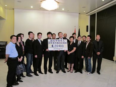 2010年8月19日,駐比利時使館舉行比僑界向甘肅舟曲災區捐款儀式,張援遠大使出席并接受旅比各主要僑團及熱心僑胞兩萬余歐元的聯合捐贈。