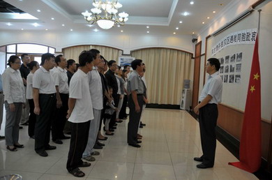 當?shù)貢r間上午10點,使館臨時代辦付吉軍帶領使館全體館員和家屬以及駐坦首席軍事專家辦公室人員集體默哀,深切哀悼舟曲遇難同胞。