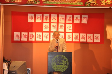 2011年3月2日和7日,維州華人社團(tuán)聯(lián)合會和以墨爾本洪門民治黨為首的維州華人中國國慶籌委會分別召集籌辦了大型晚宴,熱烈歡迎施偉強(qiáng)總領(lǐng)事履新。墨華人華僑、留學(xué)生代表等近700人參加。維州議員林美豐,市議員王宗堅、雷示人、蔣天麟,前市長蘇震西,州長華人事務(wù)顧問廖嬋娥等官員應(yīng)邀出席活動。