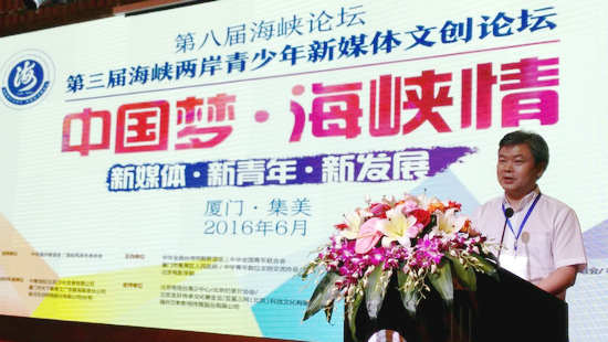 第三屆海峽兩岸青少年新媒體文創論壇于6月12日下午在廈門集美區京閩北海灣酒店拉開帷幕。該論壇是第八屆海峽論壇的重要項目,由中華海外聯誼會、海峽兩岸關系協會指導,由中華全國臺灣同胞聯誼會、中華全國青年聯合會、廈門市集美區人民政府、臺灣中華青年數位文創交流協會、北京電影學院主辦,臺聲雜志社、中國青年網、福建省臺聯、福建省青聯、廈門市集美區文化改革發展工作領導小組辦公室承辦,由中青創投(北京)文化發展有限公司、廈門市天下集美文廣傳媒有限責任公司、臺灣銀河互動網絡股份有限公司組織實施,由北京電視臺青少中心、北京紀錄片協會、北京友好傳承文化基金會、亞星三網(北京)科技文化有限公司、福州萬影影視傳媒股份有限公司支持。