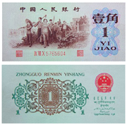 壹分、貳分、伍分、壹角、貳角、伍角和拾圓券的7個版別的正面,分別采用了汽車、飛機、輪船、拖拉機、火車、水電站和工農業生產豐收的圖景;伍圓券的正面是各民族大團結的圖案;叁圓券、貳圓券及紅、黑兩版壹圓券中的圖案分別是井岡山龍源口橋、延安寶塔山和天安門。