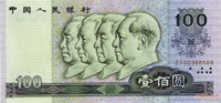 一點:100元的正面是新中國四位重要領導人毛澤東、劉少奇、周恩來、朱德的側面頭像,表達了對黨領導的中國革命和建設光輝歷史的充分肯定;50元券的正面是工人、農民和知識分子并列的頭像,強調知識分子屬于工人階級的一部分,這是思想認識上的一項重大的撥亂反正;10元券以下票面的正面都是具有代表性的民族人物的頭像。