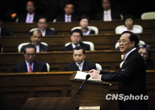 十月十四日,香港特區行政長官曾蔭權在立法會發表二零零九至二零一零年施政報告。 中新社發 譚達明 攝