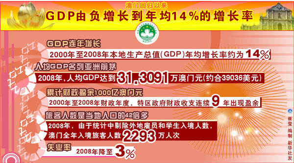 澳門回歸以來GDP由負增長到年均14%的增長率