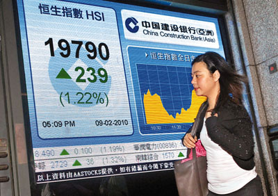 中新網(wǎng)2月10日電 據(jù)香港《文匯報(bào)》報(bào)道,市場憧憬歐盟高峰會(huì)將向希臘提供財(cái)政援助,略為紓緩?fù)饨绲膿?dān)憂,令港股結(jié)束3天跌市,9日全日收報(bào)19790點(diǎn),升239點(diǎn),總成交回升至619.21億元,國企指數(shù)則升211點(diǎn),收報(bào)11200點(diǎn)。