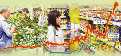 據香港文匯報報道,人民幣匯率節節上升,背靠內地的香港由于絕大部分生活所需都依賴內地入口,輸港貨品價格日漸上揚。其中,食品價格首當其沖,港九罐頭洋酒伙食行商會透露,日前接獲內地供貨商通知,大部分肉類罐頭批發價最少加價10%;菜價近月也已上漲逾1倍,就連普羅大眾的主食白米也將于短期內提價。