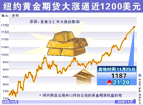 圖表:紐約黃金期貨大漲逼近1200美元 創(chuàng)紀(jì)錄