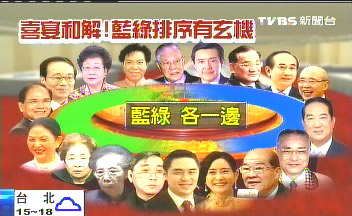 據報道,主桌最重要的位子是證婚人李登輝,再來是馬英九,順時針依序是連戰、王金平、吳伯雄、宋楚瑜、吳敦義、黃昆輝。而另一頭,李登輝夫婦旁邊,是呂秀蓮,民進黨時代的“閣揆”張俊雄、游錫堃,藍綠雖然同桌,但壁壘分明,分坐兩邊。