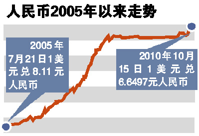 10月15日,美元對人民幣中間價為6.6497元。至此,從6月19日人民銀行宣布進一步深化人民幣匯率改革以來,人民幣對美元已升值2.6%。而美聯儲主席伯南克日前表示,由于通脹太低和失業率居高不下,可能有必要采取進一步的貨幣刺激措施。這也意味著美元維持弱勢和非美元貨幣升值暫時不會結束,因此,人民幣未來走勢還難以預料。