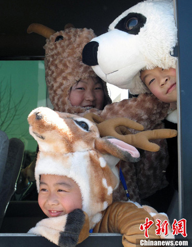 16日上午,威海小朋友來到當?shù)貦C場迎候臺灣梅花鹿和長鬃山羊,她們將穿著羊與鹿以及大熊貓樣式的服裝表演舞蹈。這三種珍貴的動物今起將一同生活在劉公島國家森林公園。劉舒凌 攝
