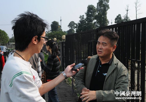 《兩岸愛心地圖》采訪組在都江堰“臺(tái)灣愛心家園”采訪成都臺(tái)商協(xié)會(huì)常務(wù)副會(huì)長(zhǎng)唐中柱。(圖片來源:四川省臺(tái)辦)