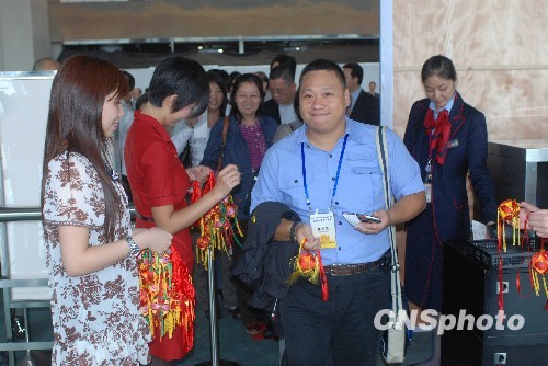 十月十九日,澳門-南寧航線開通,參加中國-東盟博覽會的澳門企業(yè)家代表團成為首批乘客之一。該航線由澳門航空公司經(jīng)營,這是澳航繼桂林航點后開通的第二條澳門至廣西航線。 中新社發(fā) 畢永光 攝