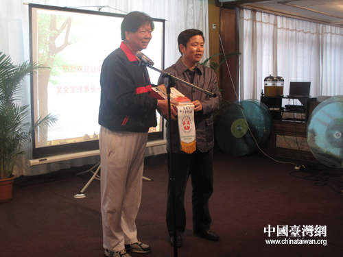 鄧務(wù)貴與吳金寶互贈禮品(湖北省臺辦 曾祥俊 攝)