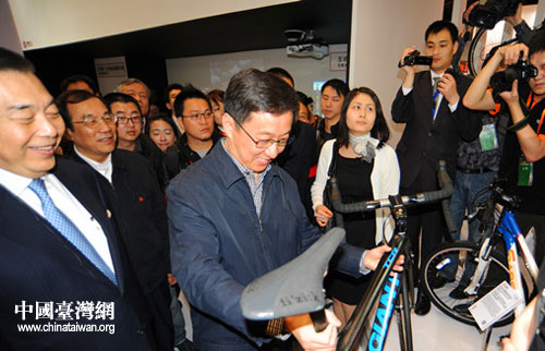 4月7日上午,中共上海市委副書記、上海市長韓正參觀了2012上海臺灣名品博覽會。(常志康 攝)