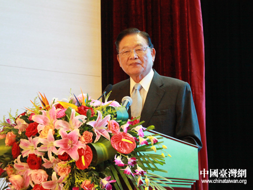 海基會董事長江丙坤出席第十一屆“遼寧臺灣周”并致辭。(中國臺灣網 宿靜 攝)