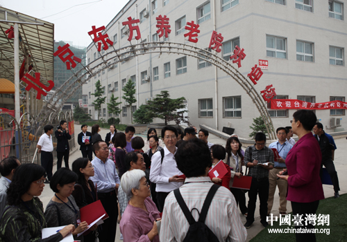 臺灣養(yǎng)老機構交流團一行來到北京朝陽區(qū)東方養(yǎng)老院交流參訪。(圖片來源:北京朝陽區(qū)臺辦)