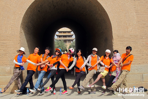 瑤族、滿族、回族、水族、畬族、藏族的學(xué)子們與臺灣青年做著臺灣阿美人“大拉手”的動作,連接城門左右兩邊,這是屬于“黃河探秘—西北風(fēng)情研習(xí)營”的專屬風(fēng)景線。(中國臺灣網(wǎng) 張潔 攝)