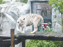 高雄壽山動物園兩只白老虎“昭海”與“歡樂”,17日首度正式亮相。圖片來源:臺灣《中國時報》