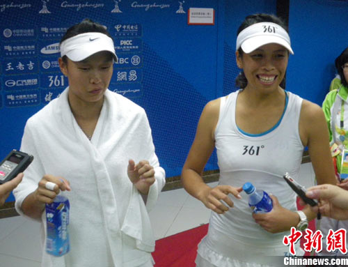 21日,廣州亞運網球女雙兩場半決賽全部結束。中華臺北女雙組合詹詠然、莊佳容戰勝韓國組合金昭貞、李珍雅,率先晉級決賽;而中華臺北另外一對組合張凱貞、謝淑薇在稍晚進行的“海峽德比”中,險勝中國“金花”彭帥、晏紫,成功晉級。至此,中華臺北包攬了兩個決賽名額,提前鎖定一枚金牌。
