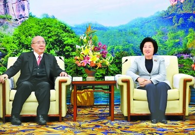 (福建)省委書記孫春蘭與中國國民黨榮譽主席吳伯雄親切會談。 記者 鄭杰 攝