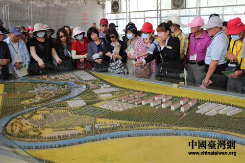臺(tái)灣基層民眾參訪團(tuán)走進(jìn)北戴河集發(fā)生態(tài)園。圖為講解員向大家介紹生態(tài)園規(guī)劃。(中國(guó)臺(tái)灣網(wǎng)發(fā) 張成標(biāo) 攝)