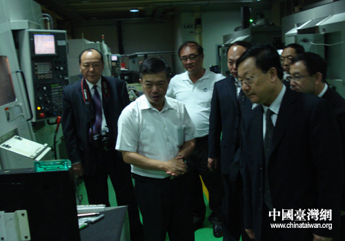撫順市委副書記喻國偉一行在參觀臺灣精銳科技有限公司生產車間。(圖片來源:撫順市臺辦)