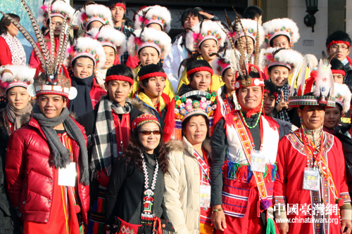 身著傳統(tǒng)服飾的臺灣少數(shù)民族代表(中國臺灣網(wǎng) 董潔 攝)
