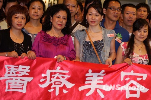 8月25日晚,中國大陸醫(yī)療美容百人首發(fā)團抵達臺北,展開為期6天的醫(yī)美、觀展、觀光、開會“四合一”體驗行程。前排左二為團長、廣州最佳女主角美容美體集團董事長林彩霞。 中新社發(fā) 董會峰 攝