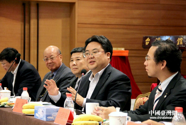 在座談會上,兩岸的中青年企業代表踴躍發言,在科技、文化、美容、運輸等各個領域各抒己見,碰撞智慧,分享經驗。