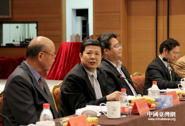 9月29日,由北京市臺灣同胞聯誼會、北京市青年聯合會主辦的京臺兩地中青年企業人士座談會在京舉行。來自海峽兩岸的三十多位中小企業代表在多個領域座談創業理念,分享經驗,共同促進兩岸經濟文化的合作與交流。(中國臺灣網 普燕 攝)