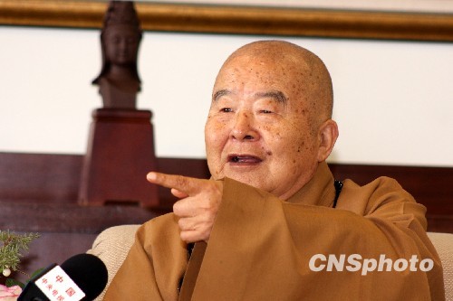9月1日,臺灣高僧、佛光山開山宗長星云大師在佛光山傳燈樓接受大陸中央媒體駐點記者聯(lián)合采訪。他在回答有關達賴來臺的問題時說,達賴喇嘛這次本不該來臺,來的時間不對、地點不對、邀請程序不對,所以產生問題。 中新社發(fā) 董會峰 攝