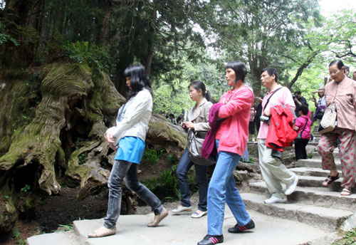 阿里山森林鐵路神木支線小火車27日發(fā)生翻覆意外,28日仍有許多大陸旅游團(tuán)前往阿里山森林游樂區(qū)旅游。 圖片來源:“中央社”