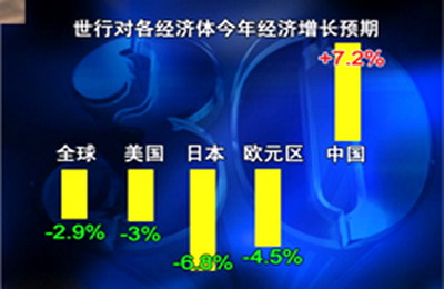 世界銀行預測,今年世界經濟將負增長2.9%。相對于世界銀行3月31日發表的今年世界經濟將下滑1.7%的預測報告,上述預測結果相對出現了一定下調。世界銀行在報告中認為,世界經濟從明年起將逐步走向復蘇,預計2010年世界經濟將回升2%,2011年將增長3.2%。
