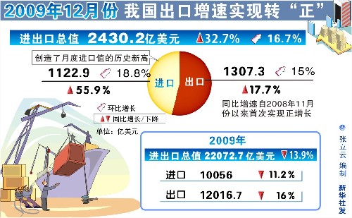 圖表:我國2009年12月出口增速實現(xiàn)轉(zhuǎn)“正” 新華社發(fā)