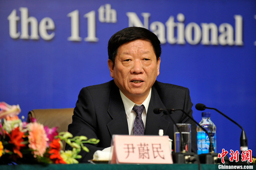 3月8日上午9時,梅地亞新聞中心。人力資源和社會保障部部長尹蔚民、人力資源和社會保障部副部長胡曉義就“就業和社會保障體系建設”話題答記者問。圖為人力資源和社會保障部部長尹蔚民答記者問。中新網記者 楊磊 攝