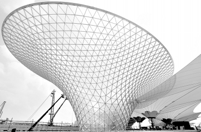 上海世博會世博軸“陽光谷”。上海世博園集成了大跨度索膜結構、“陽光谷”自然采光、雨水收集與回用、江水源和地源熱泵調控室溫以及冰蓄冷空調、光伏發(fā)電與建筑一體化、透水地面、垃圾氣力輸送、半導體照明、垂直生態(tài)綠化幕墻、節(jié)能電梯等一大批創(chuàng)新科技。 新華社記者 任瓏 攝