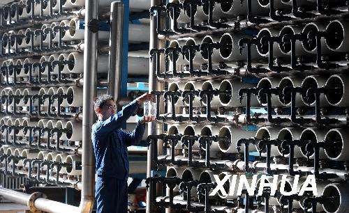 然而,在持續(xù)負增長的背景下,山西做出了“黑”轉(zhuǎn)“綠”的抉擇,堅決淘汰落后產(chǎn)能。2009年上半年,萬元工業(yè)增加值能耗下降7.92%,萬元GDP電耗下降8.54%,二氧化硫減排量超額完成了“十一五”目標。 在太原鋼鐵(集團)有限公司的污水處理作業(yè)區(qū),一名工人正在取樣。新華社記者 燕雁攝