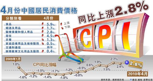 國家統計局11日公布的4月份國民經濟主要指標數據顯示,4月份,居民消費價格同比上漲2.8%,環比上漲0.2%。同期,PPI同比上漲6.8%。CPI漲幅創出自2008年11月份以來的18個新高,PPI漲幅創出自2008年10月以來的19個新高。