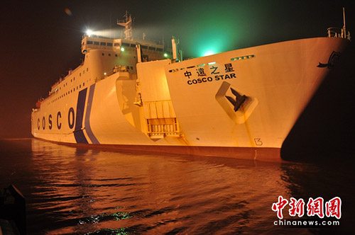 中遠之星輪啟航前往臺灣。劉晨雅 攝