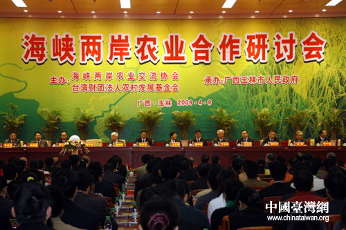 中國(guó)臺(tái)灣網(wǎng)4月9日廣西玉林消息  由海峽兩岸農(nóng)業(yè)交流協(xié)會(huì)、臺(tái)灣財(cái)團(tuán)法人農(nóng)村發(fā)展基金會(huì)主辦,廣西玉林市人民政府承辦的“海峽兩岸農(nóng)業(yè)合作研討會(huì)”今天上午在廣西玉林市開幕。