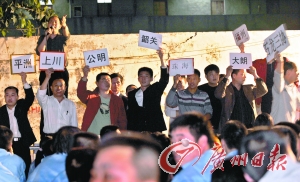 2月23日深夜,深圳平湖一民工集散地,來自各地的企業(yè)人事招聘負(fù)責(zé)人在介紹完本企業(yè)情況后,紛紛舉起牌子“搶人”,有應(yīng)聘意向的民工可選擇到牌子下排隊。