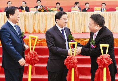 昨天的擴建項目動工典禮上,省委常委、廈門市委書記于偉國,市委副書記、市長劉賜貴等領導,都出現在現場,為擴建項目動工培土。在動工儀式之前,于偉國、劉賜貴一行,還詳細聽取了宸鴻科技近年來的發展情況介紹以及未來規劃等。