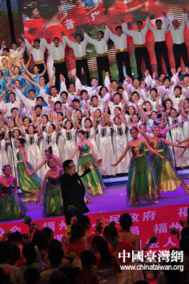 中國臺灣網6月22日福州消息 21日晚,由中國音樂家協會、福州市政府和福建省對外文化交流協會聯合主辦的“海峽論壇·第三屆海峽兩岸合唱節”在福州市體育館舉辦了閉幕式暨頒獎音樂會。中共中央臺辦、國務院臺辦副主任葉克冬,中國音協分黨組書記、常務副主席徐沛東,福建省有關領導袁榮祥、唐國忠、蘇增添、李祖可等嘉賓,在閉幕式上向來自海峽兩岸參加本屆合唱節的獲獎單位頒發了獎杯和證書。