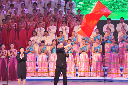 在閉幕式上,中共福州市委常委、副市長、宣傳部長朱華向臺灣新竹市副市長曾國修遞交了海峽兩岸合唱節的會旗,第四屆海峽兩岸合唱節明年將在臺灣新竹舉行。(記者 包杰)