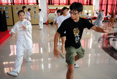 當(dāng)日,"中醫(yī)藥傳統(tǒng)文化研習(xí)營(yíng)"在福州開營(yíng)。來(lái)自海峽兩岸的60多名大學(xué)生歡聚福建中醫(yī)藥大學(xué),他們將在接下來(lái)的兩個(gè)星期里,就養(yǎng)生藥膳、針灸學(xué)、武術(shù)健身等中醫(yī)藥傳統(tǒng)文化進(jìn)行廣泛的交流與學(xué)習(xí)。新華社記者張國(guó)俊攝