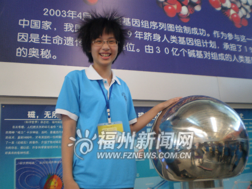 福州八中學生黃藝寧感受靜電沖冠的感覺