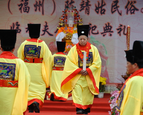 新華網福州2月14日電(記者 沈汝發)第四屆陳靖姑(福州)文化節14日上午在福州市南江濱公園舉行,來自海峽兩岸的20多家臨水夫人的宮觀及信眾參加。